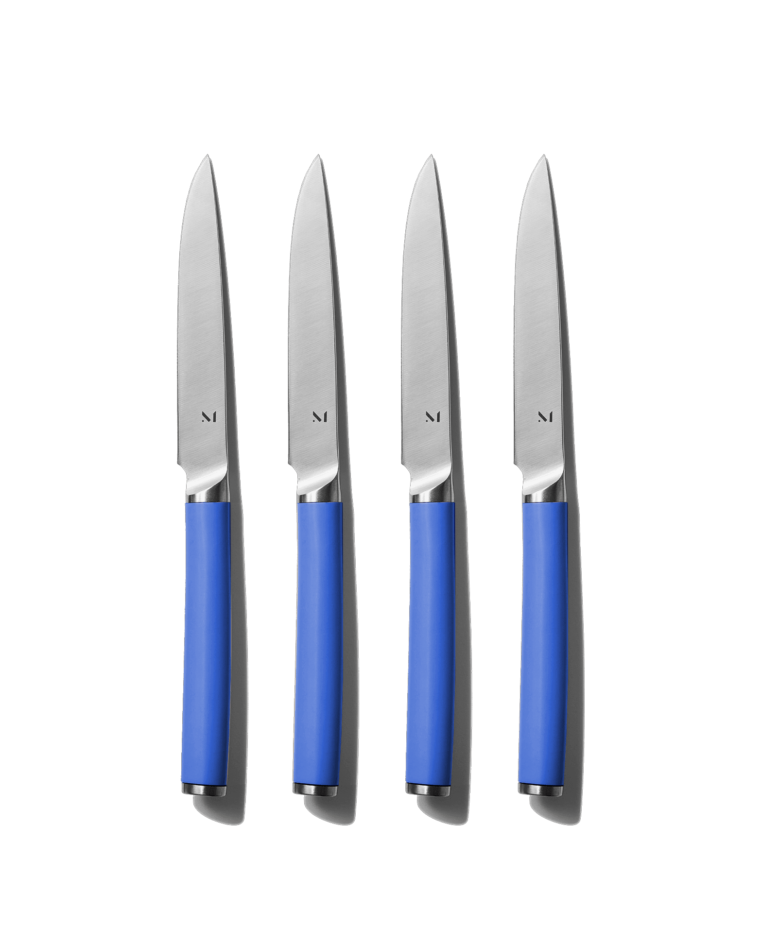 A NYT Gift Guide Pick and Wirecutter's Top Pick for Best Steak Knives. Seamlessly slice through turkey, steaks and squash with hand-finished German steel stainless blades and matte, stain-resistant, and ever-so-slightly grippy handle. Each set of four comes with a wooden holder, designed to stand upright on the counter or lay horizontally in a drawer.