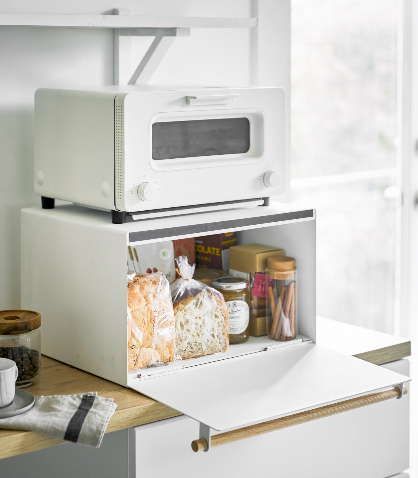 Break bread with these countertop bread storage boxes. This steel kitchen bread box is designed to streamline and simplify any kitchen. It features plenty of interior space for multiple loaves, buns, and brioches as well as jams and jellies. Small gaps along the hinges provide optimal airflow to keep your bakes fresh and scrumptious. Available in Vertical Version : With two-tiers and a smaller footprint, this option is ideal for smaller kitchens. Voted Best Large Capacity Bread Box by the Food Network in 2024! Discover more of our bread boxes and inspiration here.