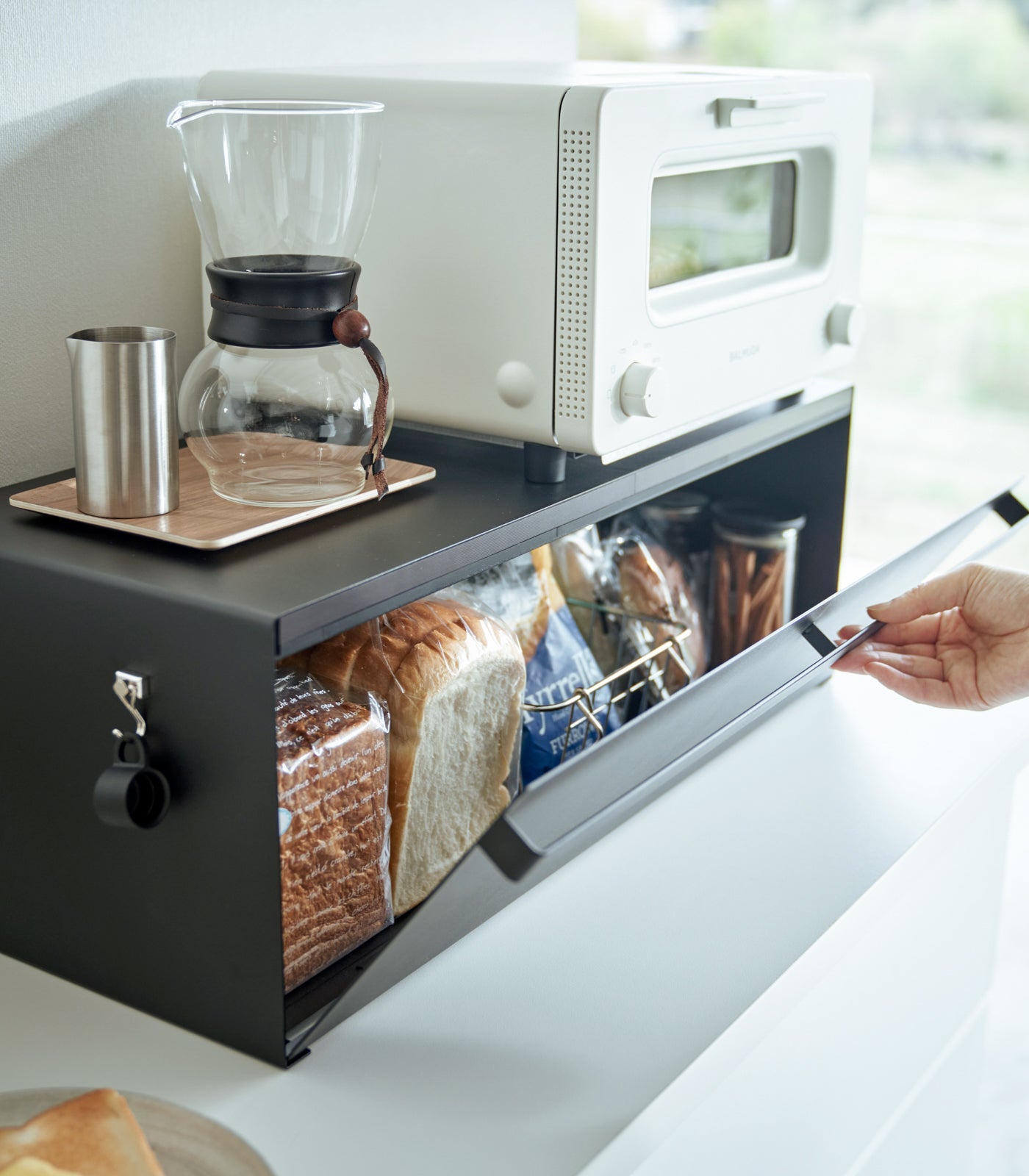 Spacious storage for your scrumptious bakes. This luxuriously wide bread box not only keeps your favorite loaves and pastry treats fresh and delicious, but also clears countertop clutter by storing fruit preserves, nut butters, teas, and more. Just like our classic TOWER Bread Boxes, this deluxe design features a small opening along the bottom to provide optimal airflow for freshness. An ideal solution for home bakers, families, and fans of large loaves like baguettes or ciabatta that can otherwise be difficult to store.
