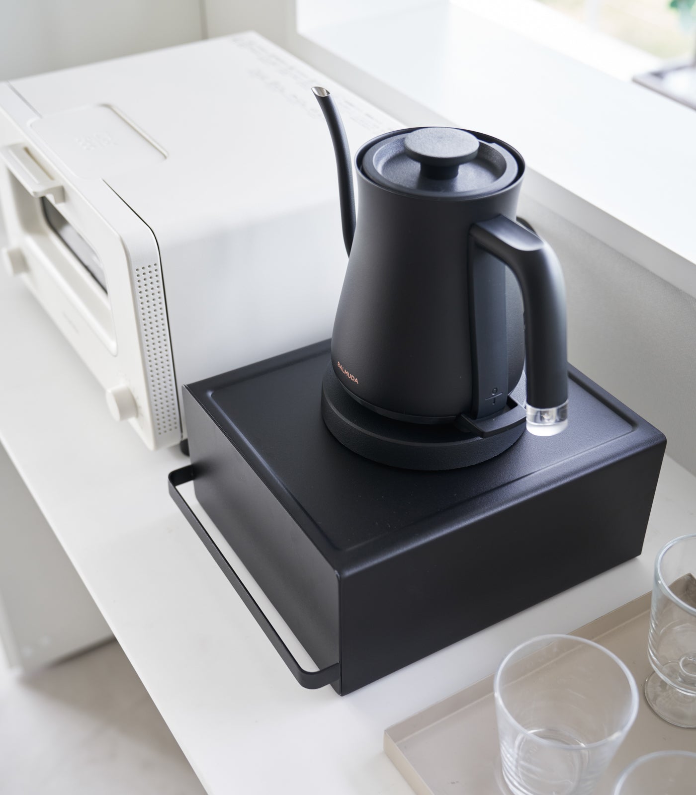Make the most of your countertop space. Store your teapot, toaster, or other kitchen appliance on top, and smaller miscellanea like tea bags, sugar, or coffee filters inside the drawers. The adjustable divider inside the drawer allows you to customize the interior to suit your items, making your space neat and efficient.