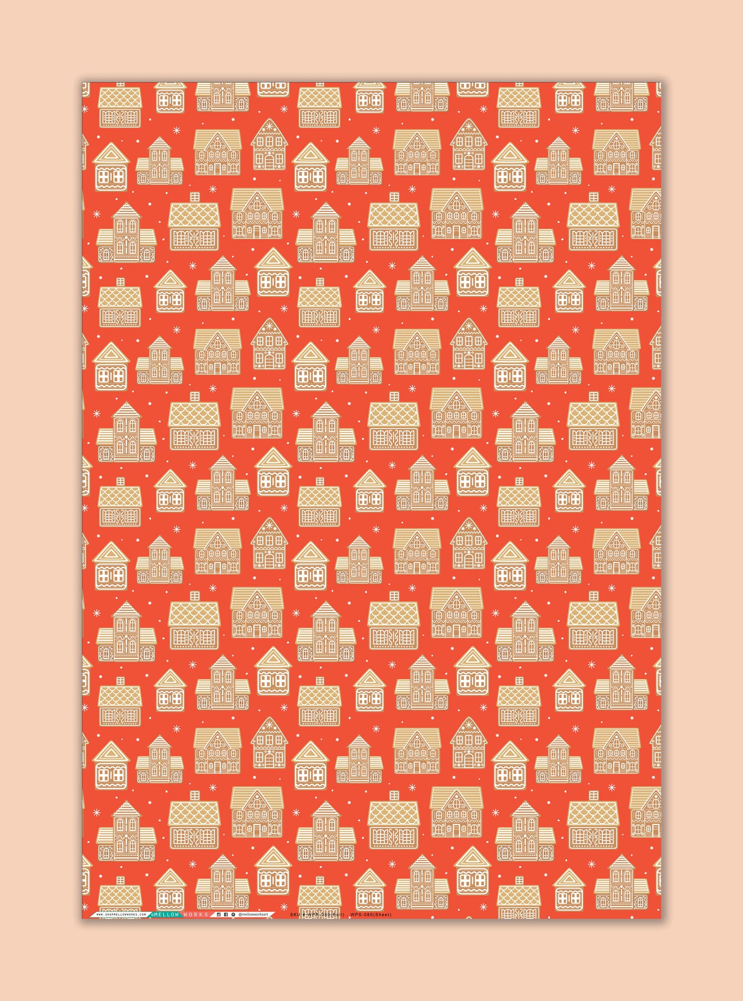 A simple and modern gingerbread houses wrapping paper in a bright holiday red. This modern Gingerbread Houses paper will look great paired with any of our holiday papers.
