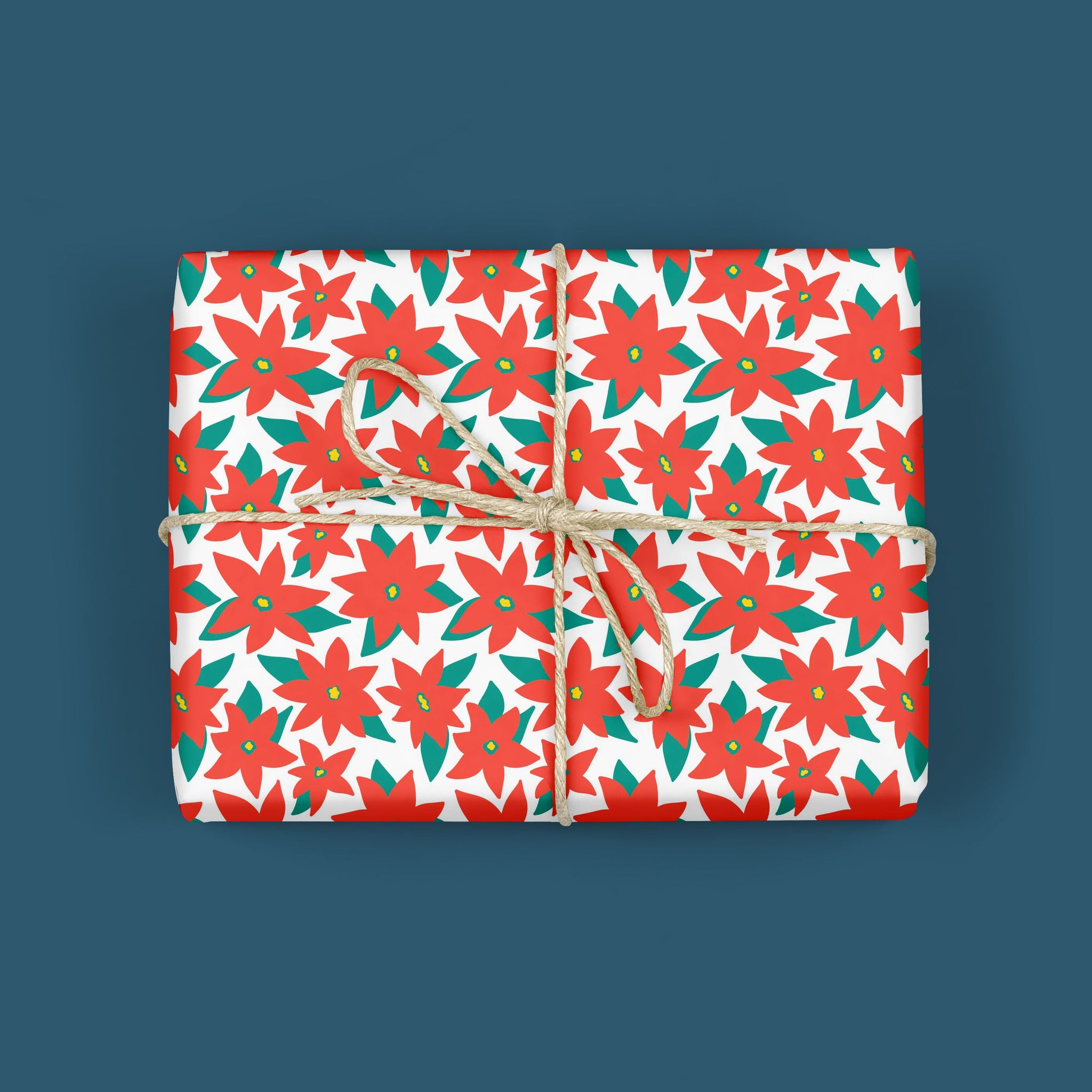 Make your Holiday gifts extra special with our modern Christmas poinsettia wrapping paper. Pair it with other red and white holiday gift wraps for an elegant festive look!