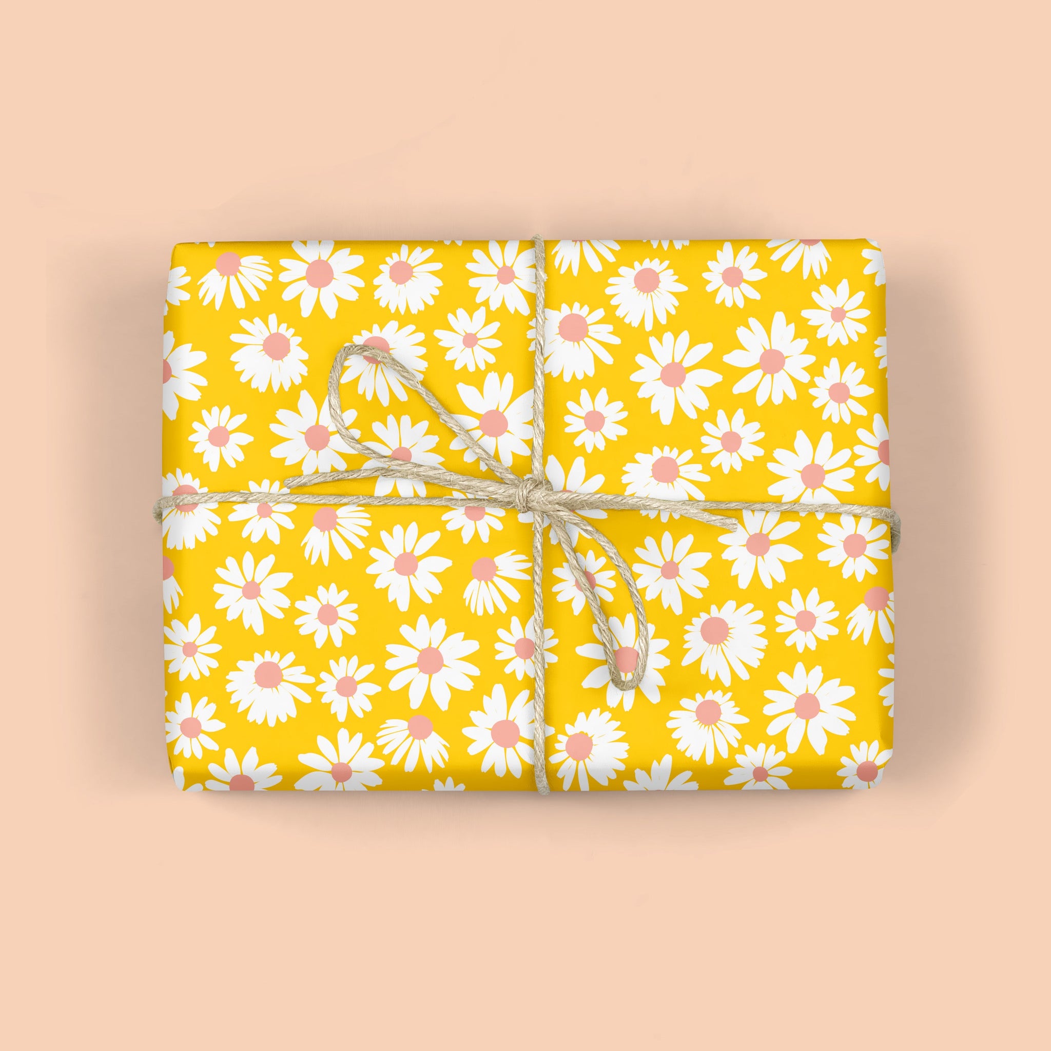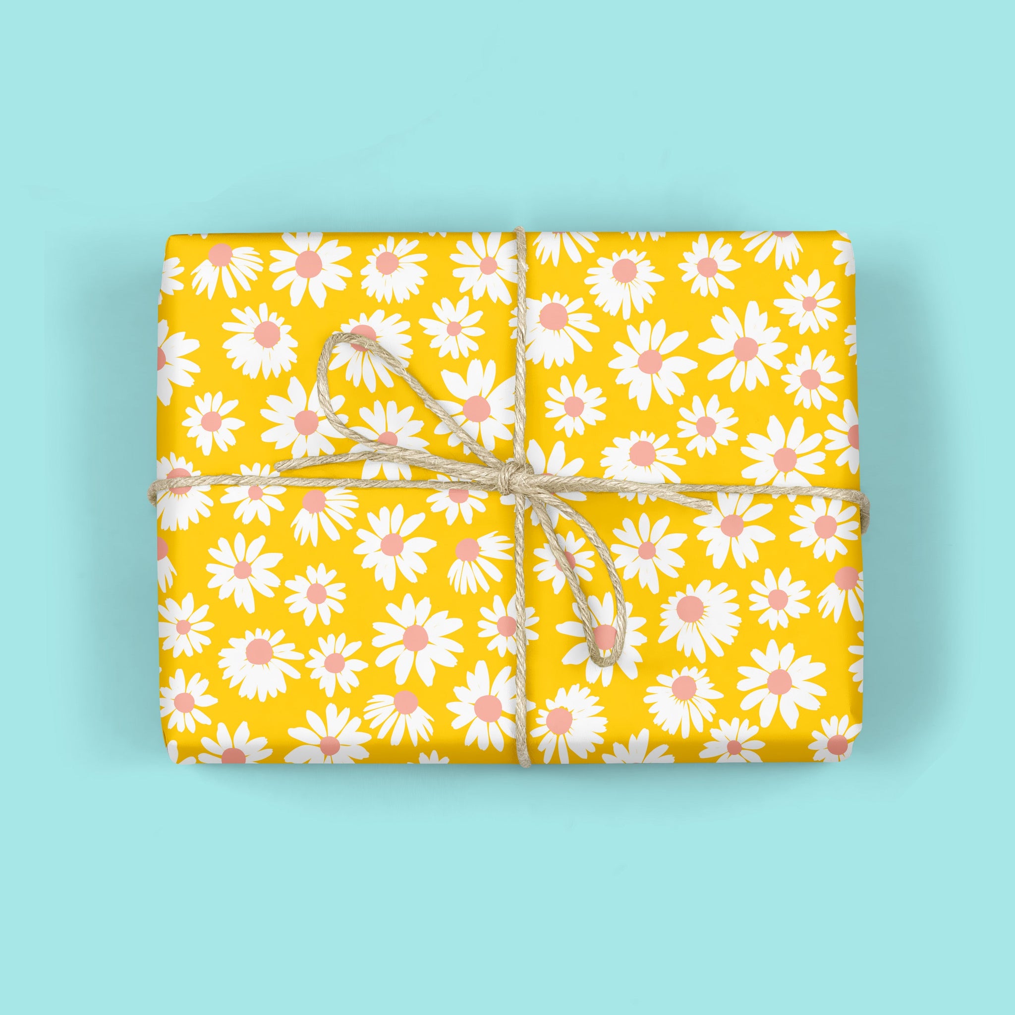 Brighten your gifts with this beautiful Daisies paper in a cheerful sunny yellow. Perfect for all celebrations from summer birthdays, house warming gifts, Mothers' day gifts to wedding gifts.